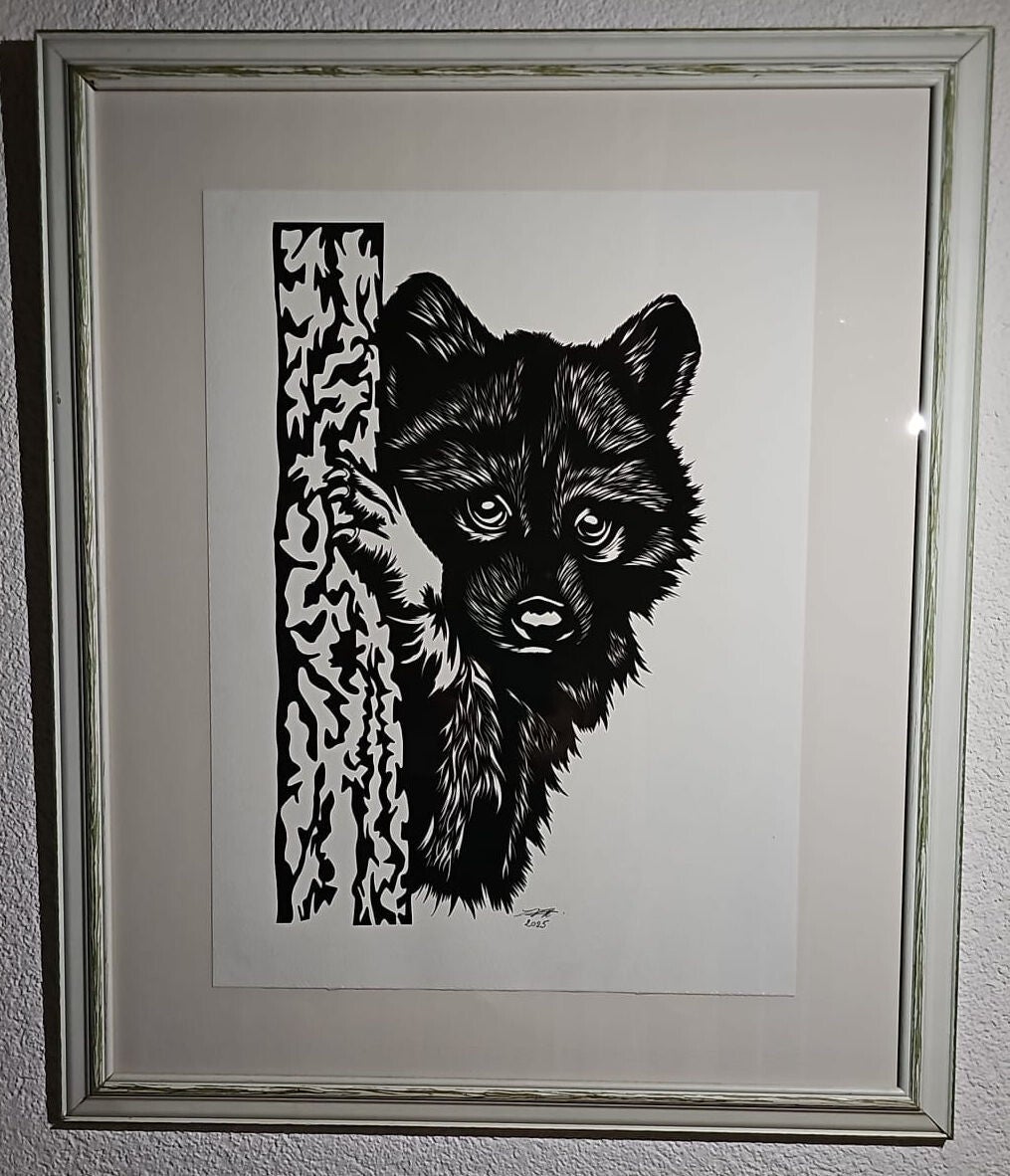 Original "Scherenschnitt Waschbär"